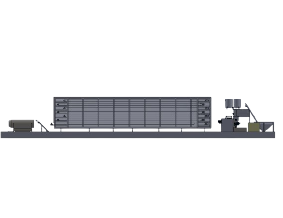 Uniform hot air (electric, gas, or diesel heated) passes through the pellets to remove moisture evenly.